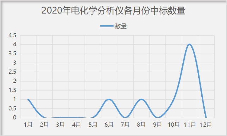 根據(jù)編者不完全統(tǒng)計(jì),受新冠疫情影響,2020年上半年電化學(xué)分析儀相關(guān)招投標(biāo)活動(dòng)幾乎停擺,1月中旬后至5月底,市場(chǎng)整體呈現(xiàn)低迷狀態(tài)。直至下半年,隨著疫情趨緩,各行各業(yè)進(jìn)入復(fù)產(chǎn)復(fù)工后,市場(chǎng)活力回升,招投標(biāo)工作才得以展開,主要集中于11月份,且全年招標(biāo)活動(dòng)僅有8場(chǎng),較往年有所減少。