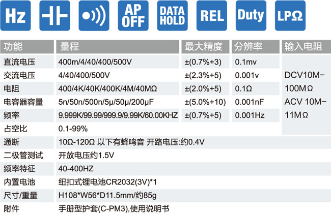 ■ 具有電壓、電阻、電容、頻率、占空比、通斷和二極管檢測(cè)功能