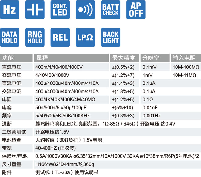 ■ 具有電阻、電容、頻率、通斷和二極管檢測功能