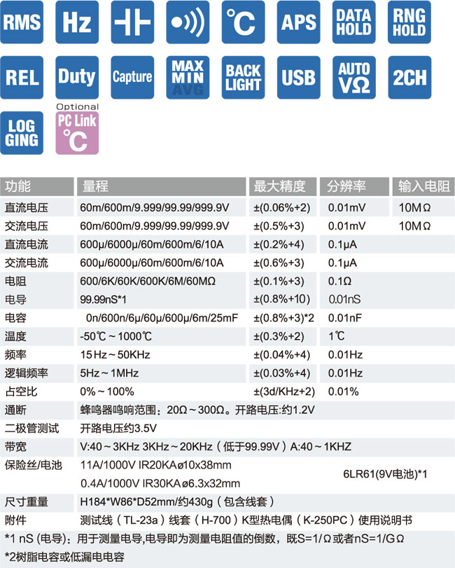 ■ 標配鍍金表筆,防腐、防接觸不良,提高測量的精度