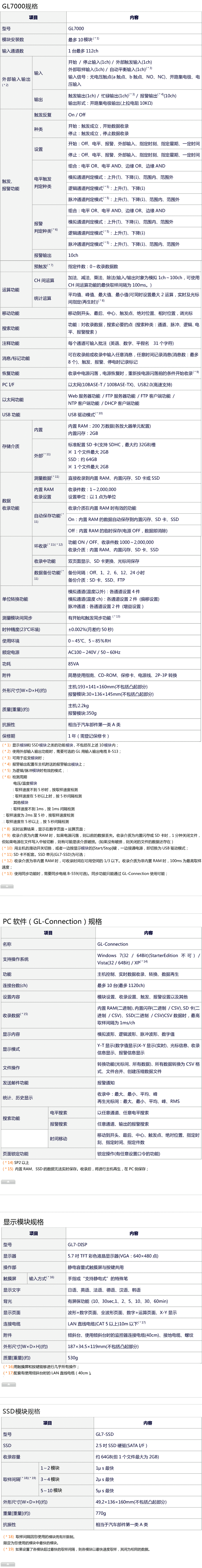 多功能存儲記錄儀GL7000的詳細技術參數(shù):