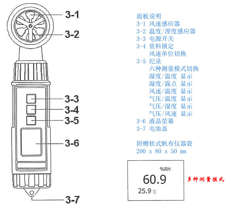 inHg 英寸汞柱 | 0.29~32.48 | 0.01 | ±0.05 |