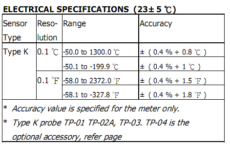 探頭輸入標(biāo)準(zhǔn)2針型熱電偶插座。
