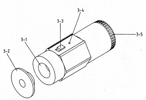 3-1 麥克風(fēng)接合面(一英吋) 3-2 0.5英吋麥克風(fēng)轉(zhuǎn)接頭 3-3 電源開關(guān)及電池測(cè)試開關(guān) | 3-4 電池OK指示燈 3-5 電池室/蓋 |
