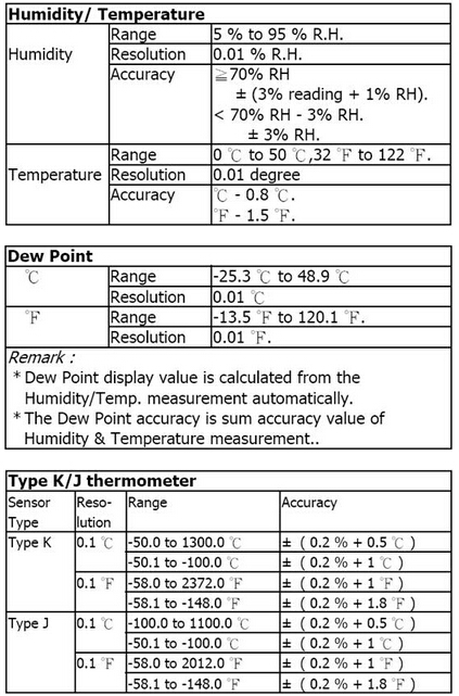 濕度范圍: 0~95.00%R.H.±3%