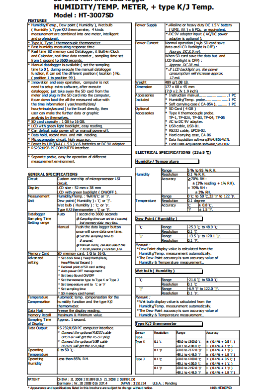 本網(wǎng)頁(yè)所展示的有關(guān)【路昌LUTRON HT-3007SD溫濕度計(jì)+熱電偶】的信息/圖片/參數(shù)等由的會(huì)員【臺(tái)灣路昌LUTRON-深圳柏萊科技有限公司