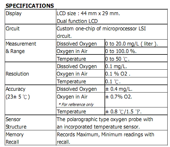 *這個(gè)數(shù)字測(cè)氧儀提供一個(gè)注冊(cè)temp.sensor為精確的溶解氧極譜式探頭(做)和溫度。測(cè)量。