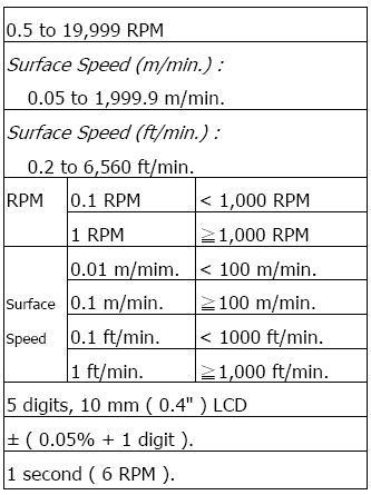 3.轉(zhuǎn)速范圍:0.5~19999RPM(轉(zhuǎn)/分鐘)