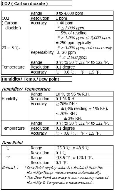 1.二氧化碳:0~4000ppm﹒溫度0~50.0℃