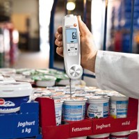 testo 104-IR配備精確的2點(diǎn)瞄準(zhǔn)激光,光學(xué)分辨率10:1,測量范圍清晰可見,可隨時(shí)進(jìn)行快速并精確的表面溫度測量。二合一溫度測量儀特別適用于食品進(jìn)貨檢測以及快速檢測單個(gè)或整箱食品的表面溫度。