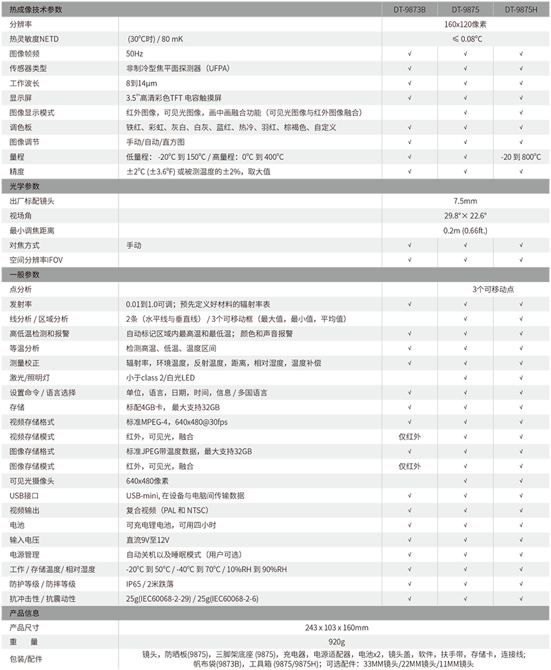 1.-20~400℃寬量程和高精確度, -20~800℃(DT-9875H)