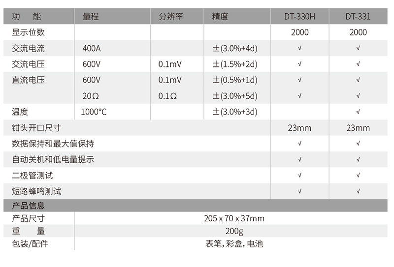 真有效值TRMS,可準(zhǔn)確測量非線性負(fù)載電路指標(biāo)(DT-330H)