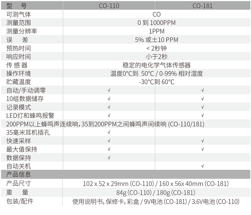 一氧化碳濃度在200 PPM以上時,蜂鳴聲連續(xù)響