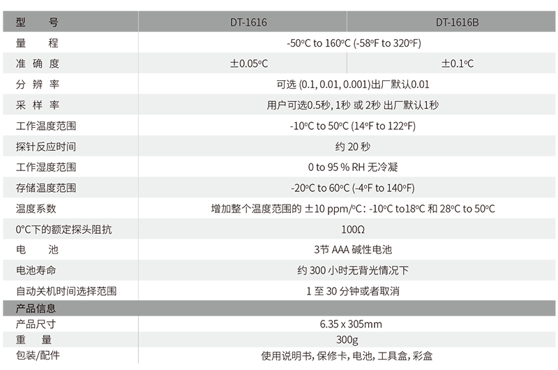 兩種精度可選:±0.05°C(DT-1616)/±0.1°C(DT-1616B)
