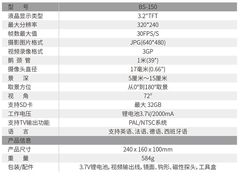 ● 柔性材料的IP67的防水等級視頻鏡頭