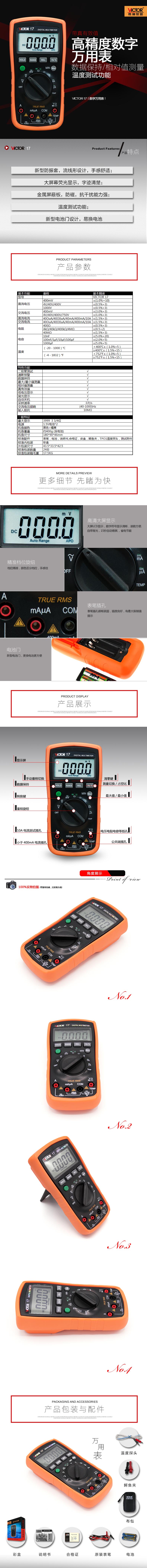 本網(wǎng)頁(yè)所展示的有關(guān)【勝利 VICTOR 17數(shù)字多用表】的信息/圖片/參數(shù)等由的會(huì)員【勝利victor-深圳柏萊科技有限公司 】提供,由柏萊儀器網(wǎng)-專業(yè)銷售儀器儀表服務(wù)商-深圳柏萊科技有限公司會(huì)員【勝利victor-深圳柏萊科技有限公司 】自行對(duì)信息/圖片/參數(shù)等的真實(shí)性、準(zhǔn)確性和合法性負(fù)責(zé),本平臺(tái)(本網(wǎng)站)僅提供展示服務(wù),請(qǐng)謹(jǐn)慎交易,因交易而產(chǎn)生的法律關(guān)系及法律糾紛由您自行協(xié)商解決,本平臺(tái)(本網(wǎng)站)對(duì)此不承擔(dān)任何責(zé)任。您在本網(wǎng)頁(yè)可以瀏覽【勝利 VICTOR 17數(shù)字多用表】有關(guān)的信息/圖片/價(jià)格等及提供 【勝利 VICTOR 17數(shù)字多用表】的商家公司簡(jiǎn)介、聯(lián)系方式等信息。