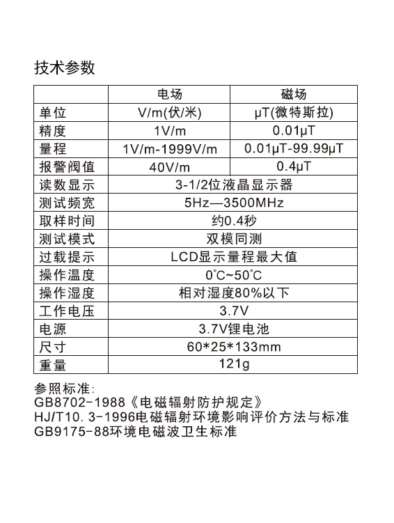 本電磁輻射測試儀具備下列特點: