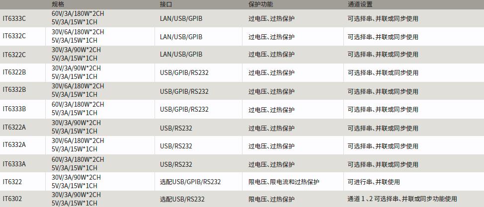 IT6300系列為高性能的可編程三路直流電源,每路輸出電壓和電流均可設定為從0到最大額定輸出值。該系列提供了通道的串聯(lián)、并聯(lián)以及同步功能,可以給客戶的測試帶來多用途的解決方案。該系列具有1mV/1mA的高分辨率,具有高精度以及高穩(wěn)定性的特征,并且配備了遠端測量的功能,可以使測試更加準確。內(nèi)置的標準的USB /RS232/GPIB 通訊接口,大大提升了通訊速度,并且客戶還可以利用光標調(diào)節(jié)數(shù)字步進值來方便操作。
