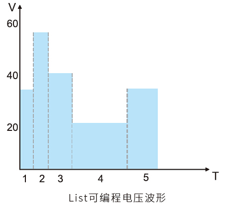 IT6100系列電源提供了高速的List模式輸出,可以使電源按照用戶編輯的序列自動(dòng)輸出。通過(guò)編輯LIST操作的每一個(gè)單步的值及時(shí)間來(lái)產(chǎn)生各種輸出變化順序。