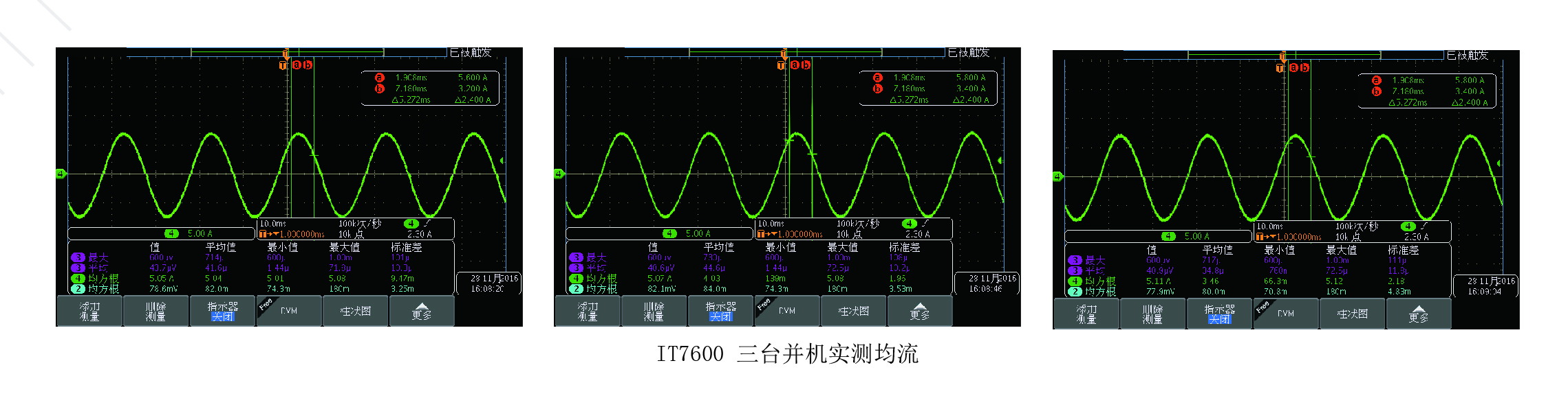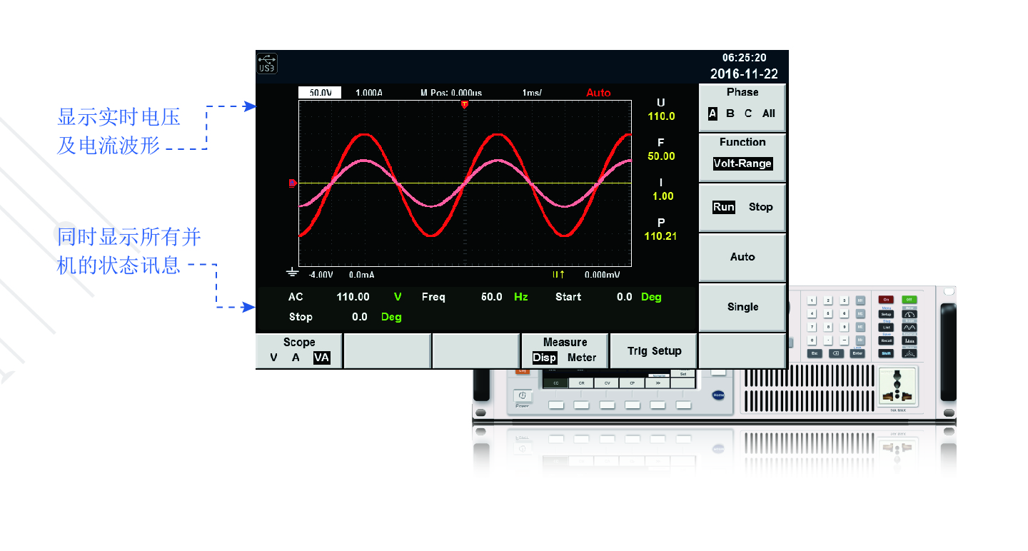 可顯示單機或者并機情況下電壓及電流的實時波型