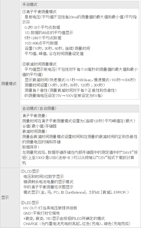 4.可以根據(jù)每種類型的離子發(fā)生器選擇離子平衡的衰減時(shí)間和測量時(shí)間。