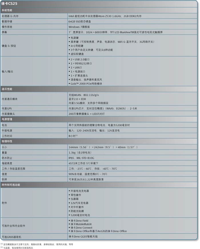 徠卡CS25平板電腦技術(shù)參數(shù)