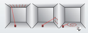 精確投影點(diǎn)位 無論是投影布局天花板、地板的龍骨網(wǎng)格,還是墻壁上膨脹螺絲孔位,徠卡三維測量儀都可以精確地把你的設(shè)計(jì)圖案投影在任何平面上。 | ![]() |