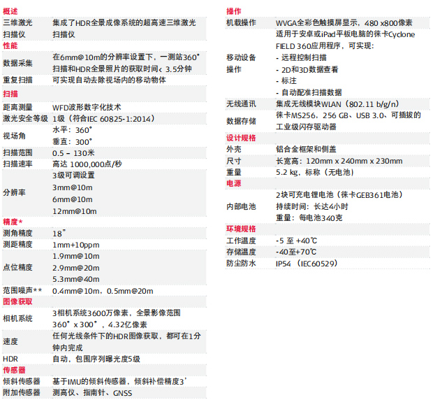 徠卡RTC360 LT掃描儀技術(shù)參數(shù)