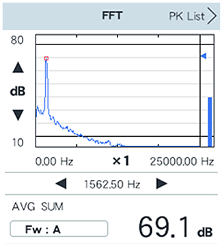 使用FFT頻譜分析功能能夠?qū)β曇暨M(jìn)行狹帶域的高精度分析。通過平均處理功能,可使頻譜波形穩(wěn)定,另外通過使用觸發(fā)功能,不僅穩(wěn)態(tài)噪聲,即使是單發(fā)噪聲現(xiàn)象也可撲捉進(jìn)行分析。