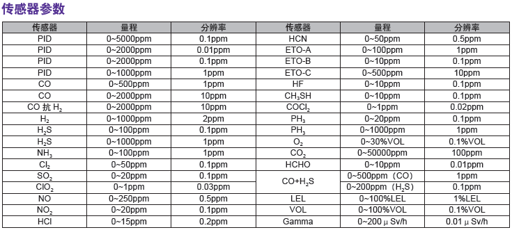 超過30種可以即插即用的智能傳感器,包括射線,ppb和ppm的PID傳感器,電化學(xué)毒氣和氧氣傳感器,