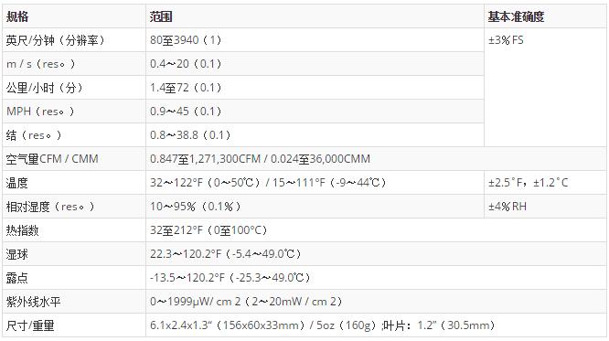 內(nèi)置傳感器可測量空氣流速,氣流,溫度,濕度,濕球,露點,熱指數(shù),風(fēng)冷,大氣壓,高度和紫外線