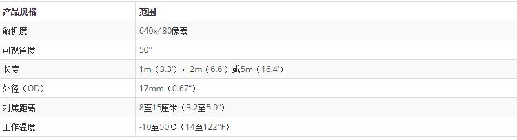 BR-17CAM 17mm鏡筒相機頭,帶有用于Extech內(nèi)窺鏡型號BR100,BR150,BR200和BR250的電纜。39英寸電纜長度,2.36英寸最小彎曲半徑。50度視角。5.9到9.8英寸的焦距。