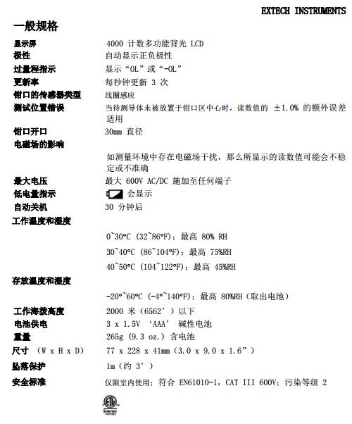 三、EXTECH MA610 規(guī)格特征 :