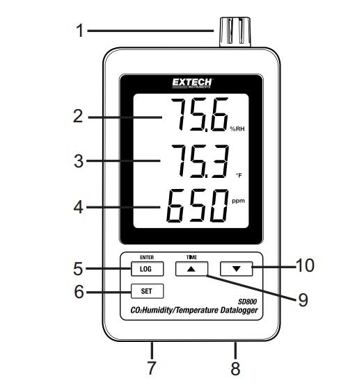 1.連接到數(shù)據(jù)記錄儀 CO2 探頭,由插頭插入底部連接器數(shù)據(jù)記錄器。
