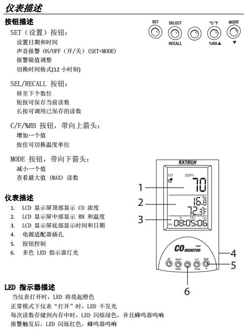二、EXTECH CO50 儀表圖示 :
