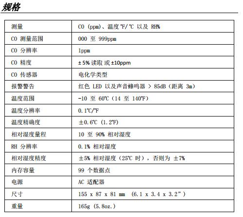三、EXTECH CO50 規(guī)格特征 :