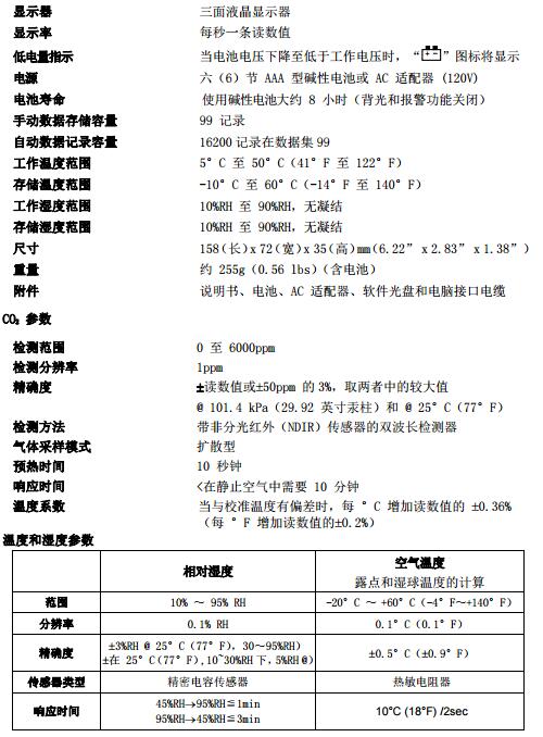 CO 2測(cè)量范圍:0至6,000ppm