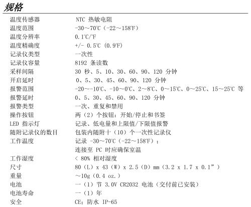 THD5 型“一次性”USB 溫度記錄儀。該款記錄儀專用于監(jiān)測(cè)需要符合冷藏鏈物流要求的產(chǎn)品的運(yùn)輸。THD5 是一款易于使用、防水(IP65)的 USB 便攜式溫度記錄儀。THD5 使用 USB 2.0 接口,可插入 PC 由用戶對(duì)數(shù)據(jù)記錄儀進(jìn)行設(shè)置。這樣,THD5 即可放在需要監(jiān)測(cè)溫度之處。放置妥當(dāng)后,用戶可以按下 START(開(kāi)始)按鈕開(kāi)始記錄。記錄完成后,可以重新將THD5 插入 PC 并生成所記錄的溫度讀數(shù)的 PDF 報(bào)告(需要 Adobe Reader? 軟件)。隨附十(10)個(gè)一次性記錄儀;每個(gè)可以記錄 8192 條溫度讀數(shù)。該儀表在交付前均經(jīng)過(guò)全面測(cè)試和校準(zhǔn)。