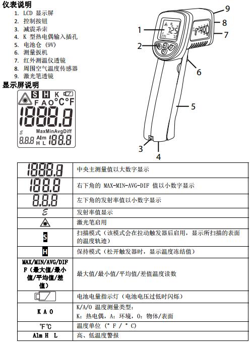 IR267 型迷你紅外測(cè)溫儀。IR267 型紅外測(cè)溫儀采用非接觸式(紅外)技術(shù)來測(cè)量和顯示溫度讀數(shù)和周圍空氣溫度。此外,K 型熱電偶探針還能進(jìn)行接觸式溫度測(cè)量。其內(nèi)置激光筆可提高目標(biāo)精度,背光 LCD 顯示屏和方便快捷的按鈕則為用戶帶來符合人體工學(xué)的舒適操作體驗(yàn)。該型號(hào)紅外測(cè)溫儀的發(fā)射率可調(diào)整,這使其幾乎能夠測(cè)量任何表面的溫度。該儀表在交付前均經(jīng)過全面測(cè)試及校準(zhǔn),只要妥善使用,您便可常年享受其可靠服務(wù)。