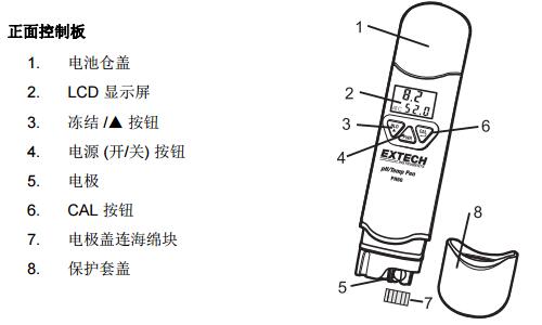 內(nèi)置電極,傳感器蓋,內(nèi)部pH電極保護(hù)蓋和4個LR44紐扣電池