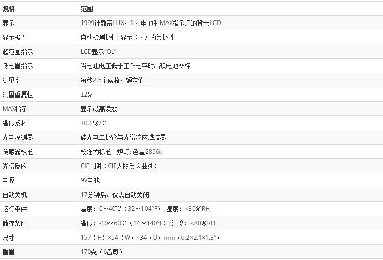 測量光強(qiáng)達(dá)4000Fc / 40000Lux,測量速度為1.5次/秒