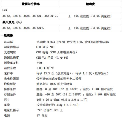 寬范圍至40,000Fc或400,000 Lux,最大分辨率為0.01 Fc / Lux