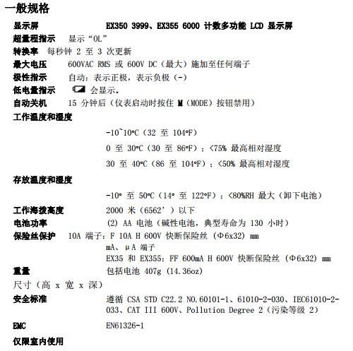 EX350 系列是具有多種功能的真有效值數(shù)字萬用表。除標準的 DMM 特性之外,還提供低阻抗 (Lo Z) 模式、背光 LCD、能夠安全感測電源的非接觸式電壓檢測器、變頻電壓測量和溫度計 (EX355) 功能。該儀表在交付前均經(jīng)過全面測試及校準,只要妥善使用,您便可常年享受其可靠服務(wù)。