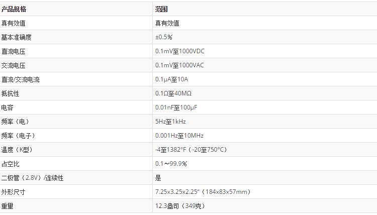 交流/直流電壓和電流,電阻,電容,頻率,溫度,占空比,二極管/連續(xù)性