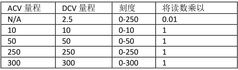 5. 利用以下圖表閱讀 AC/DC 電壓測量: