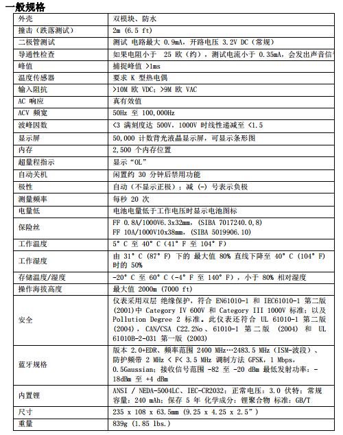 測(cè)量交流/直流電壓和電流(包括遠(yuǎn)程鉗位電流)、電阻、電容、頻率(電氣和電子)、每分鐘轉(zhuǎn)數(shù)、占空比、dBm/dBV、二極管、導(dǎo)通性和溫度