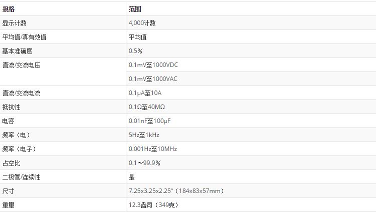 AC / DC電壓和電流,電阻,電容,頻率,占空比,二極管/連續(xù)性