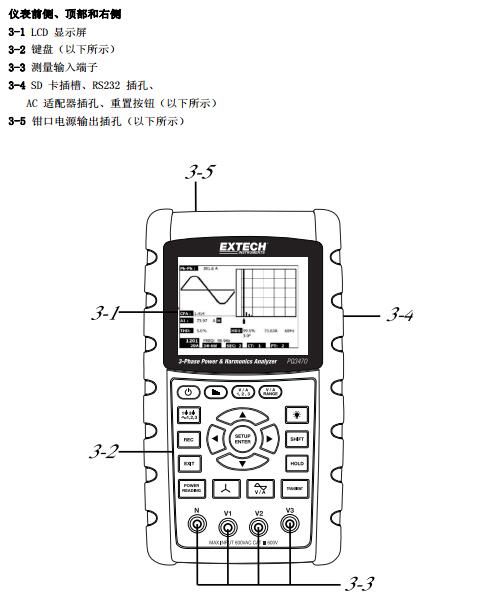 二、EXTECH PQ3470 儀表圖示 :