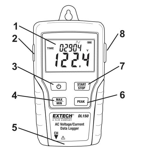 7. 啟動/停止: 按啟動/停止按鈕一次暫停數據。再次按恢復.設置記錄模式后, 按此按鈕超過4秒鐘, 然后在液晶屏上顯示錄制后釋放它。儀表將根據軟件設置。