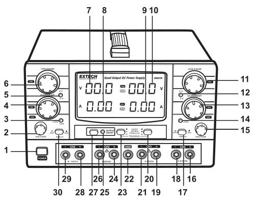 382270是一個四輸出直流電源有兩個0到30V / 0到5A輸出加上3到6.5V / 3A和15V / 1A的兩個固定輔助輸出。兩個30V輸出可并聯(lián)組合為10A或串聯(lián)組合為60V。配有4對測試導(dǎo)線(香蕉插頭和鱷魚夾)和一條交流電源線。